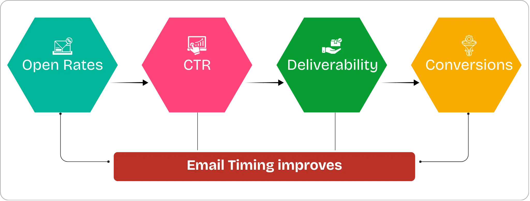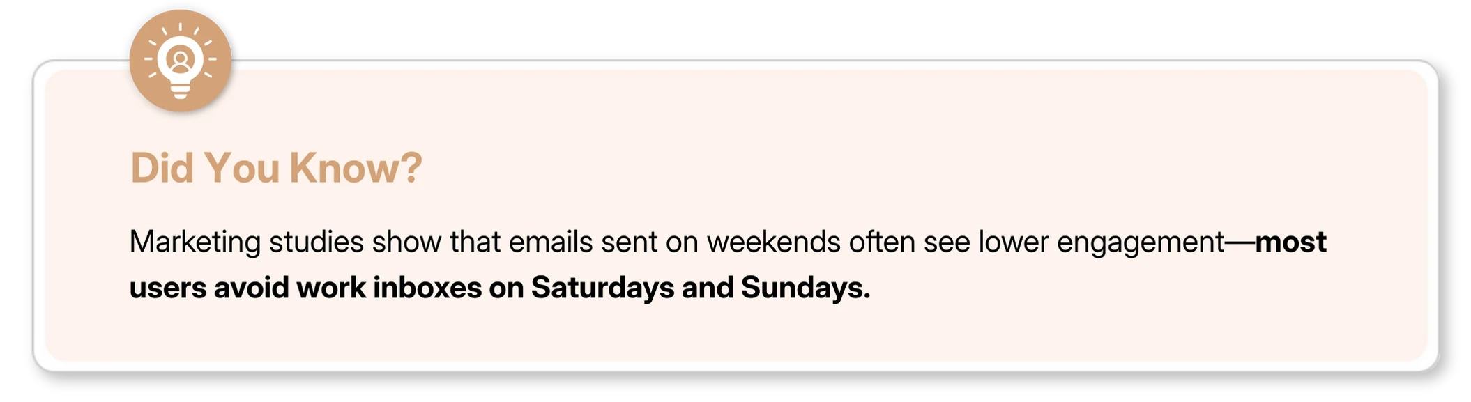 Every inbox has small “attention windows” throughout the day. When your emails land inside those windows, they perform better.