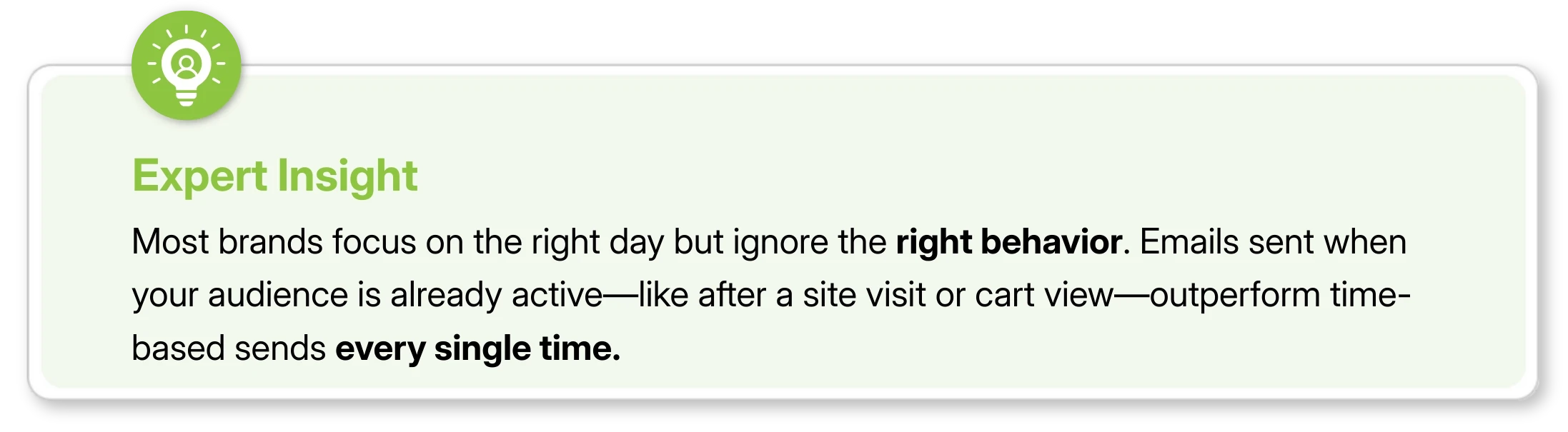 Timing can make or break your email performance. Even the most valuable message gets ignored if it lands at the wrong moment — buried under dozens of other emails. But when your email arrives at the right time, when people are alert and checking their inbox, engagement increases automatically.