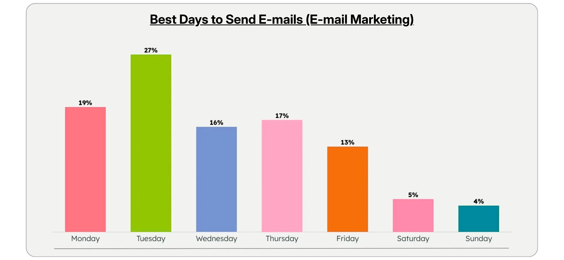 That makes Tuesday–Thursday the most stable choices for newsletters, lead nurture emails, and B2B communication.