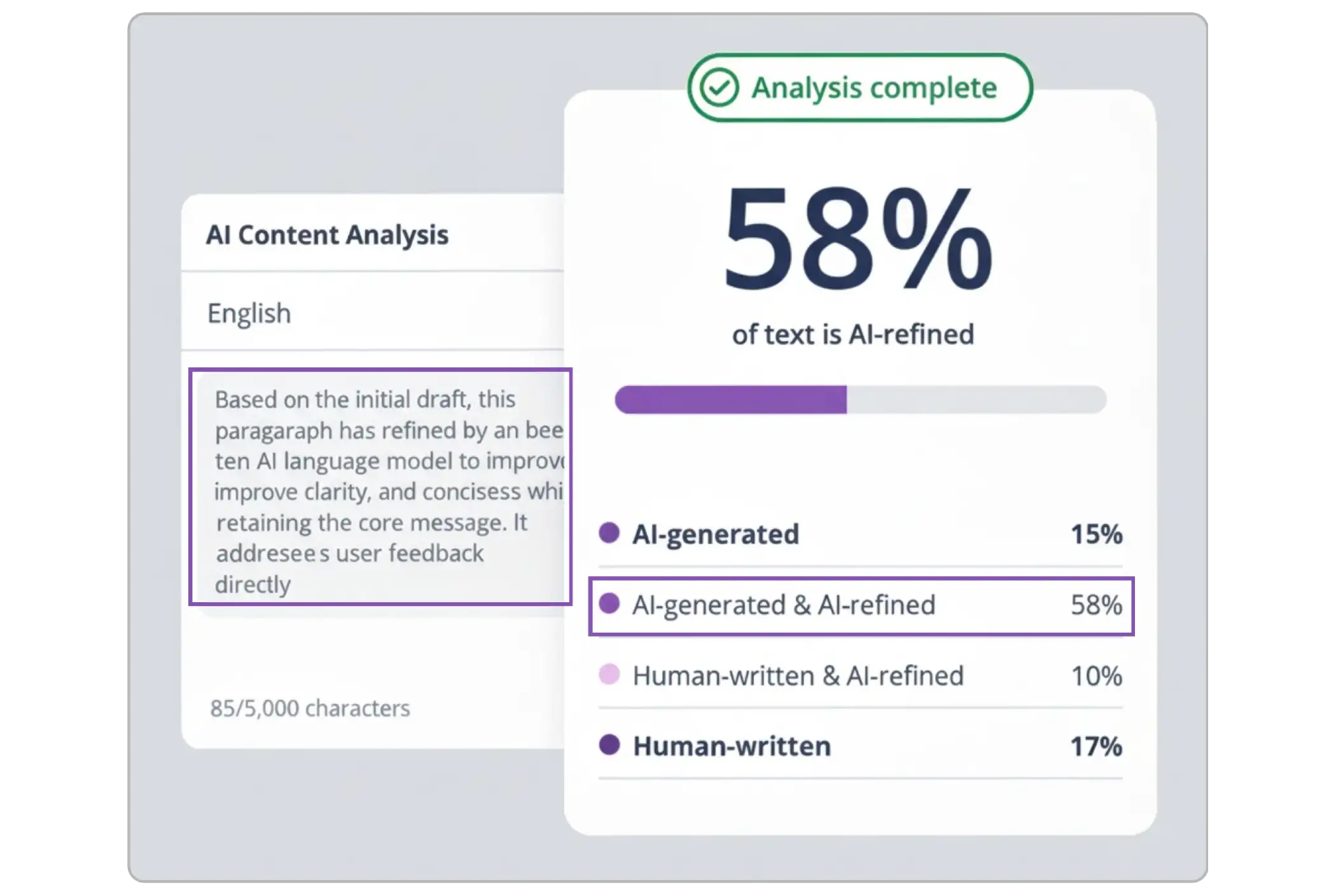 AI-refined content is when AI is used to fine-tune, improve or edit content that was written by humans. This practice combines human creativity and skill sets with the efficiency and analyzing capabilities of AI.