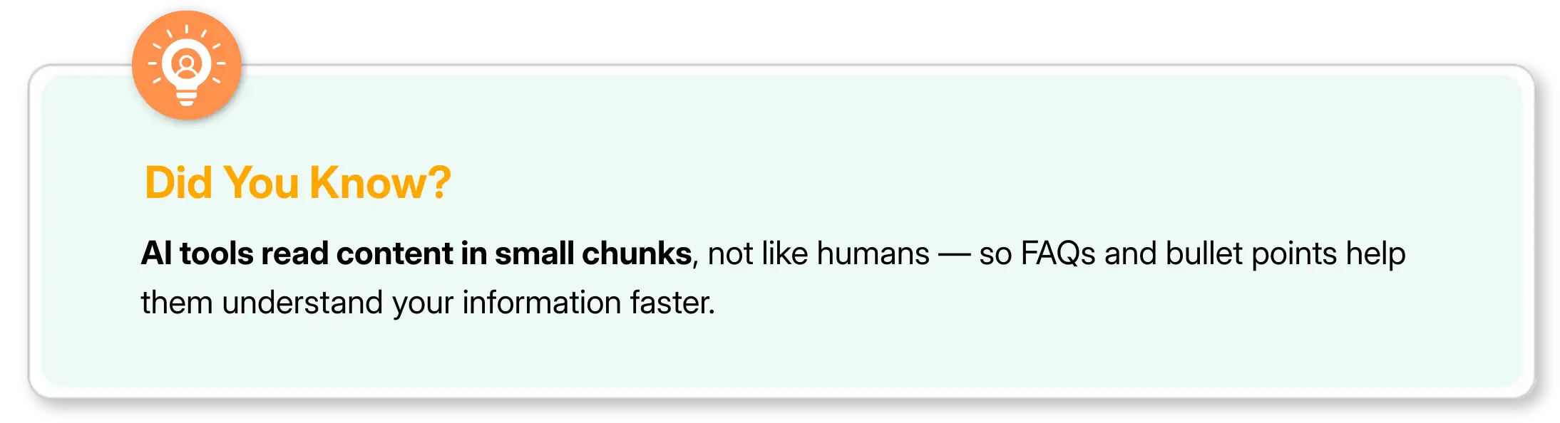 AI systems divide content into "chunks" differently than humans do. These elements will help AI parse your information more effectively: