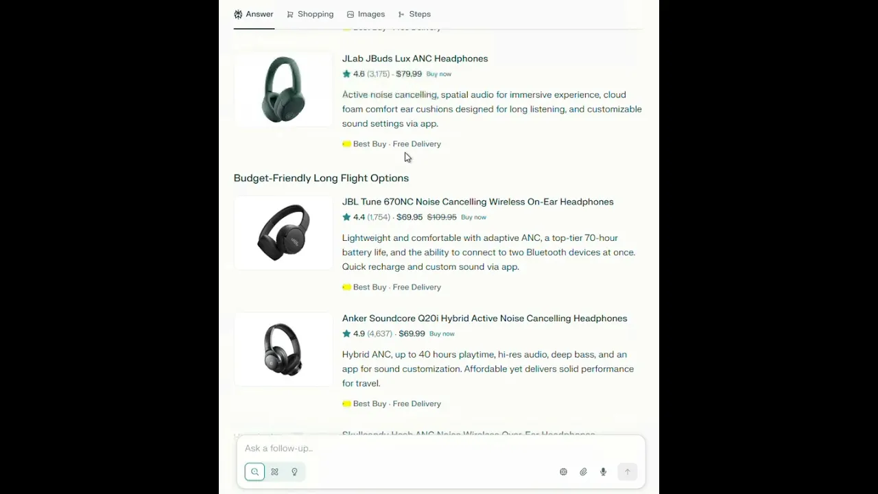 Picture this: It's 2 AM, and Sarah from Denver is searching for the perfect noise-canceling headphones for her upcoming flight. Instead of opening 15 browser tabs, comparing prices on different sites, and getting overwhelmed by choices, she simply asks Perplexity: "What are the best noise-canceling headphones under $200 for long flights?"