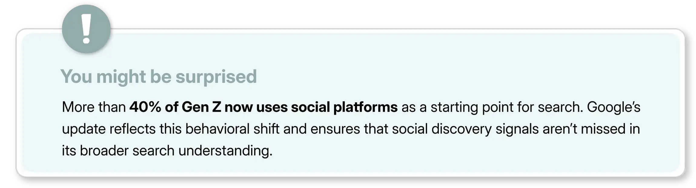 This marks an evolution from traditional SEO toward Search Everywhere Optimization, where visibility extends across websites, socials, videos, and emerging formats—all influenced by Google Search.