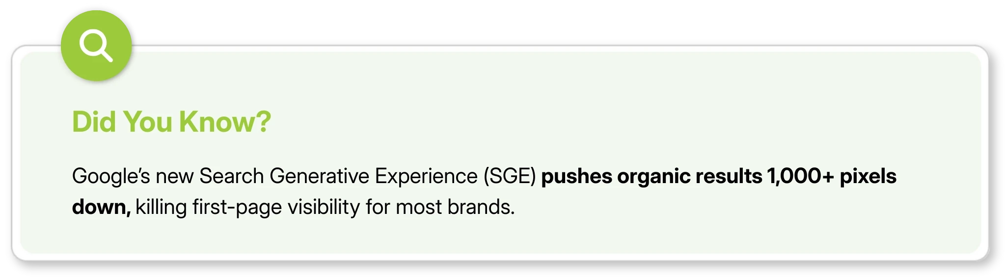 Today, success doesn’t come from just optimizing for Google. It comes from optimizing for AI systems, generative engines, brand signals, user experience, and the broader ecosystem people use to find answers.