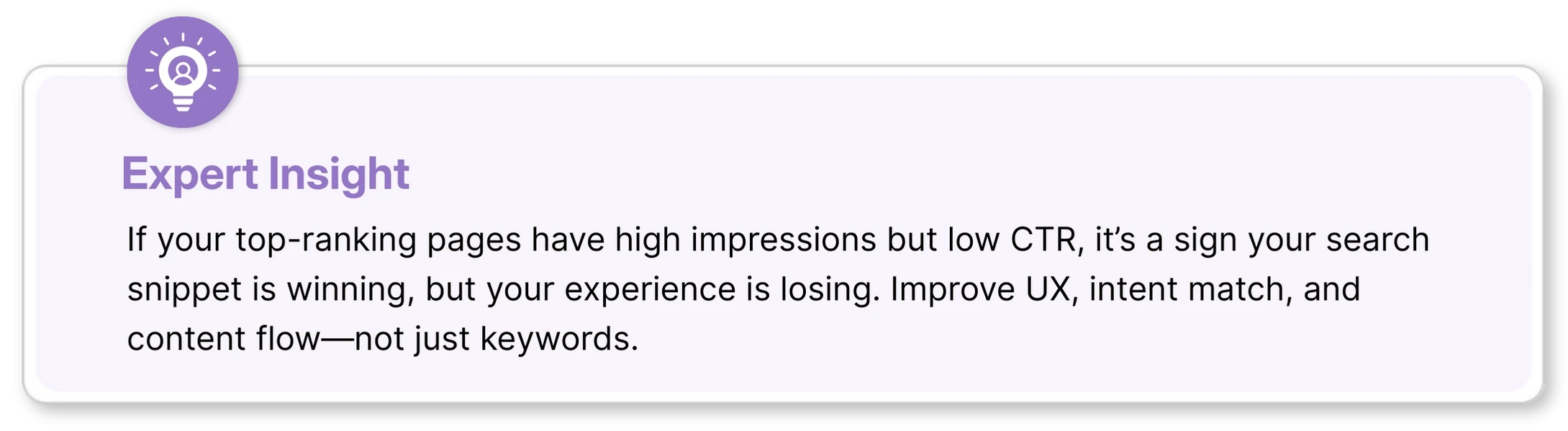 This means even if you're ranking #1, users might not click. Or if they do click, they may leave if your page isn't engaging enough.