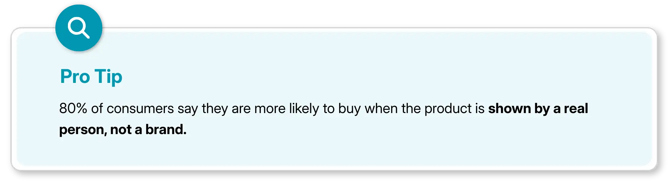 Boosts Social Engagement: UGC typically performs better than brand-created content because users view it as more authentic, real, and relatable. As an example, UGC shows customers using the product in everyday life or joining in on a trending TikTok challenge. This increased amount of engagement leads to a significant increase in: