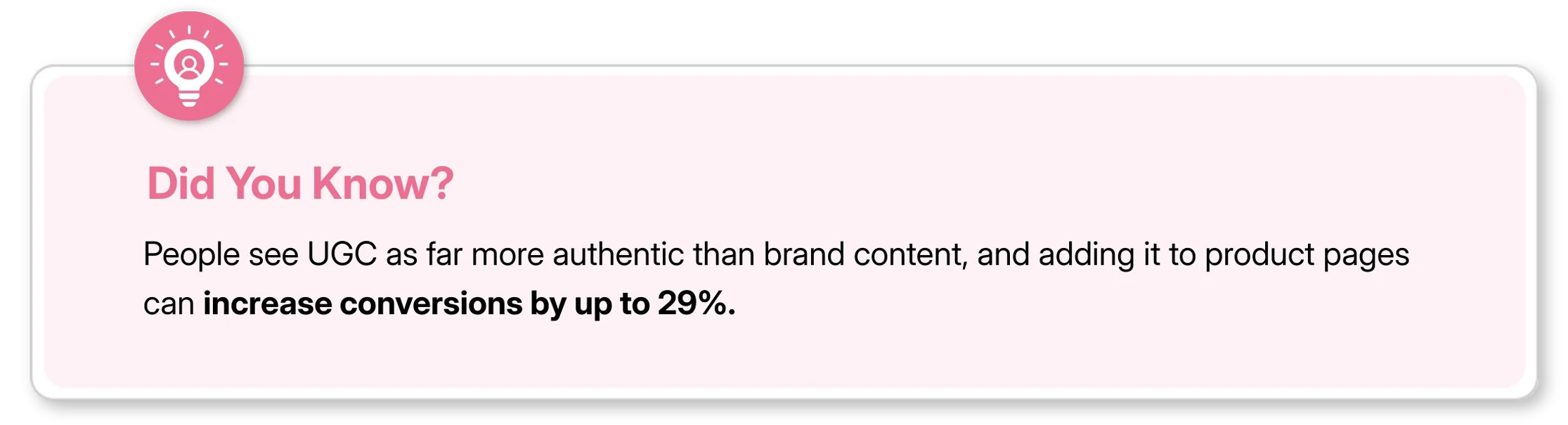 UGC for Product Pages: Having real customer images/videos on product pages can greatly increase conversion rates.