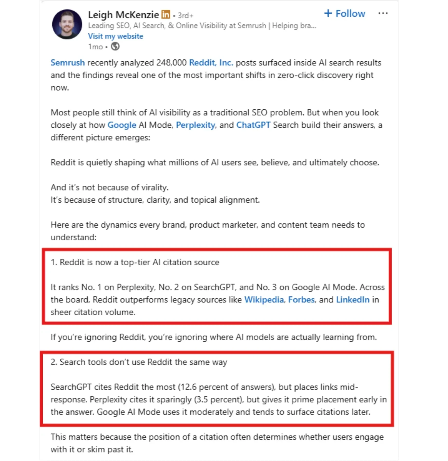 LinkedIn may feel more professional. Reddit may feel chaotic. Yet Reddit dominates AI answers. Why?
