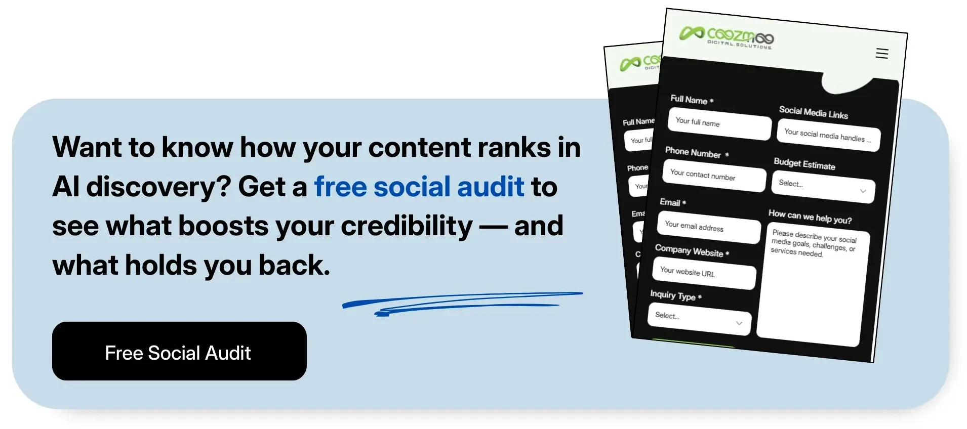 Visibility in AI isn’t about gaming algorithms. It’s about being present, credible, and useful in the conversations that AI is already listening to. In the age of AI, social presence isn’t optional — it’s foundational.
