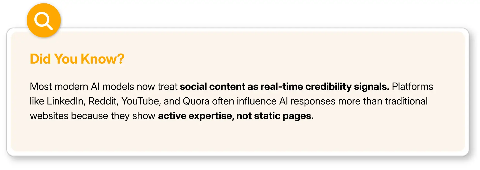 This isn’t speculation or hype. It’s grounded in platform disclosures, third‑party research (including SE Ranking data), and observable AI behavior. The goal of this blog is simple: explain how AI uses social media data, which platforms matter most, and what that means for visibility in the age of AI.