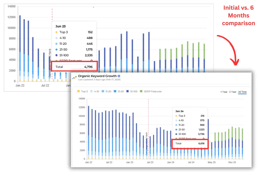 We built a strong organic foundation to improve keyword visibility, authority, and relevance and strengthen internal linking and on-page content structure.