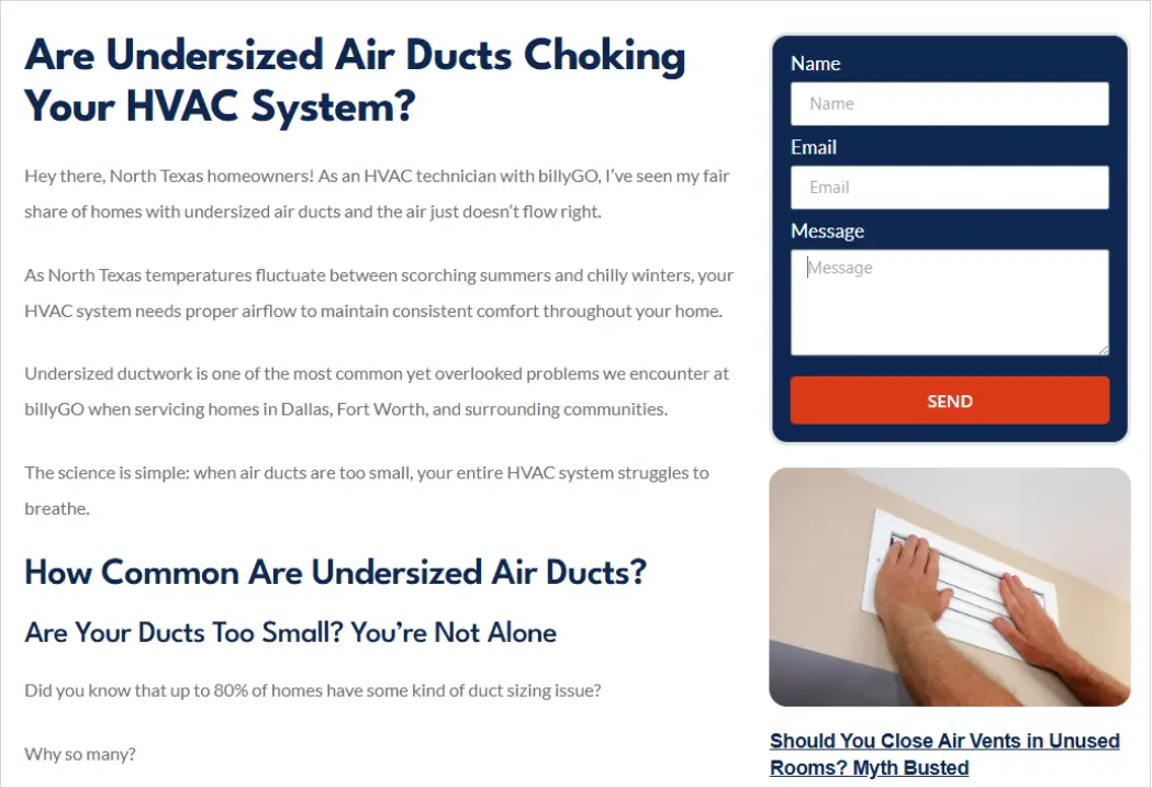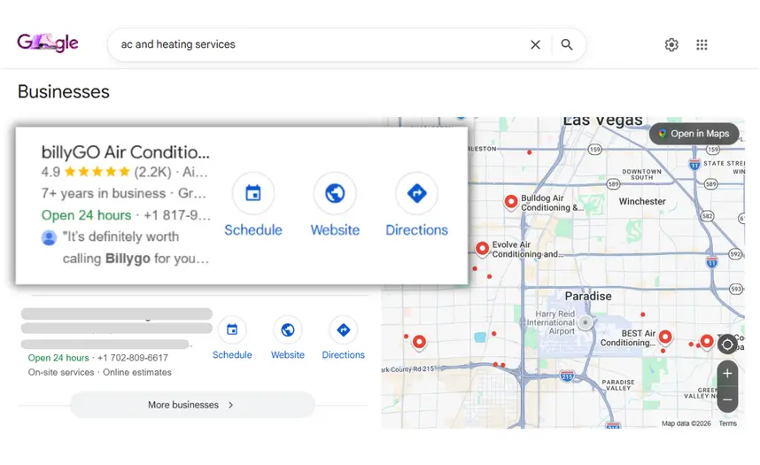Despite being well-regarded locally, billyGO faced challenges competing in search results against established HVAC brands. Their digital presence was not optimized to capture high-intent local searches, limiting growth opportunities.