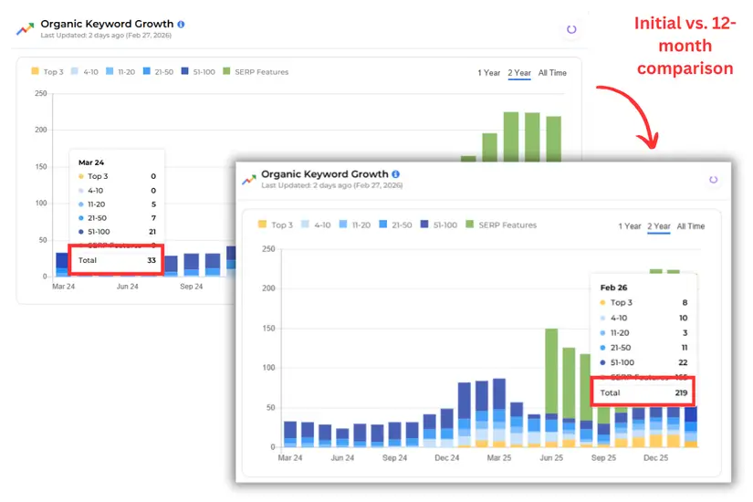 We optimized metadata and on-page content in English and Spanish to target high-intent keywords and improve search engine rankings across international markets.