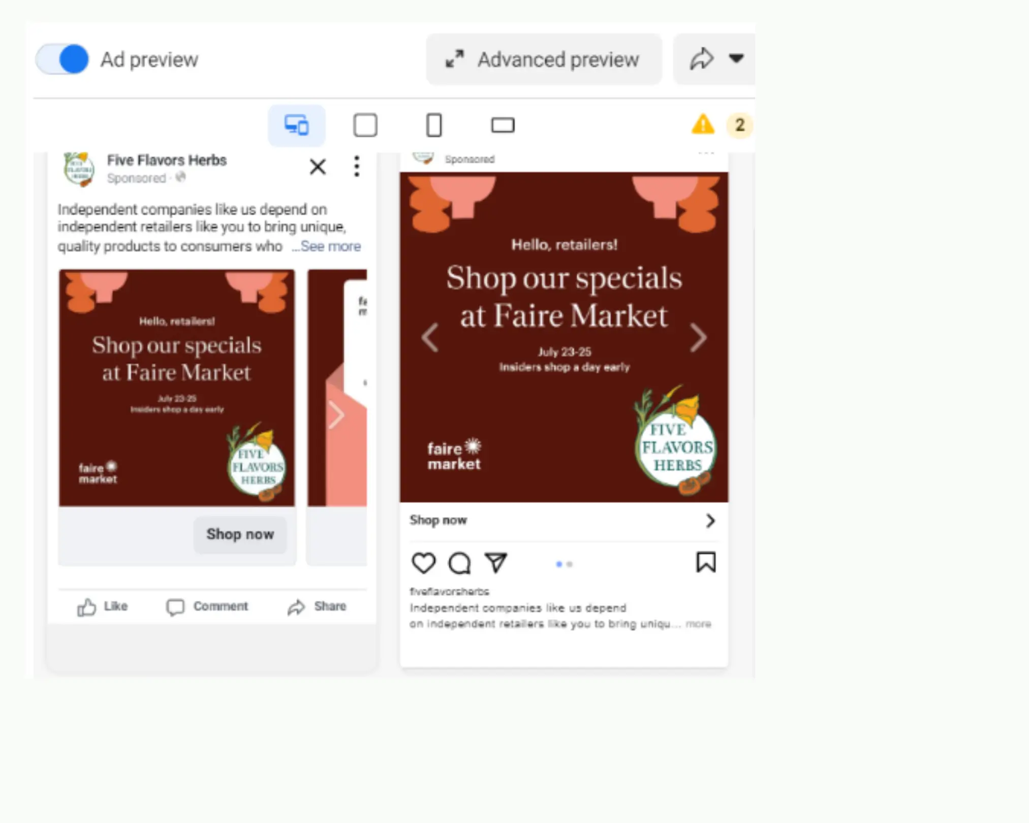 We built high-performing campaigns across Facebook and Instagram to drive engagement and promotional sales.