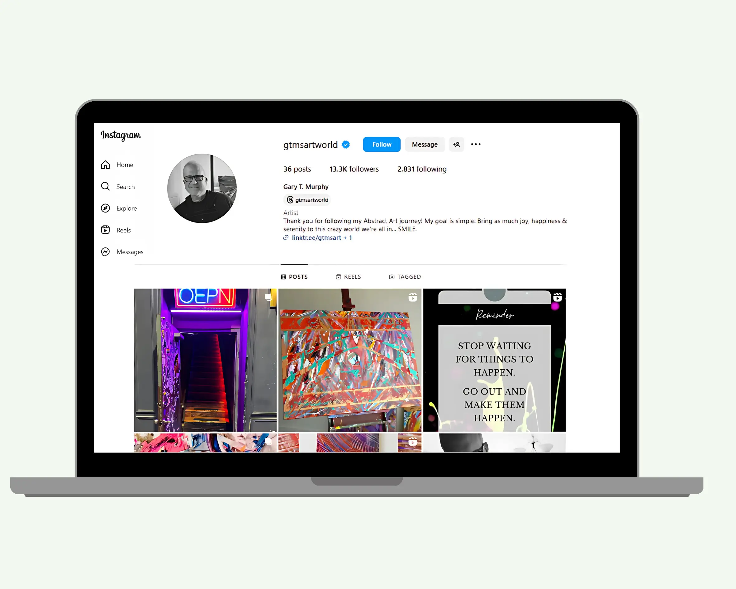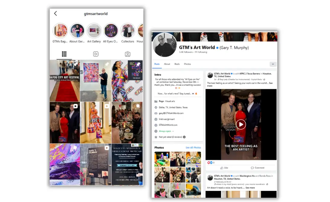 We curated a visually consistent Instagram grid and optimized profiles to reflect Gary’s unique abstract style.