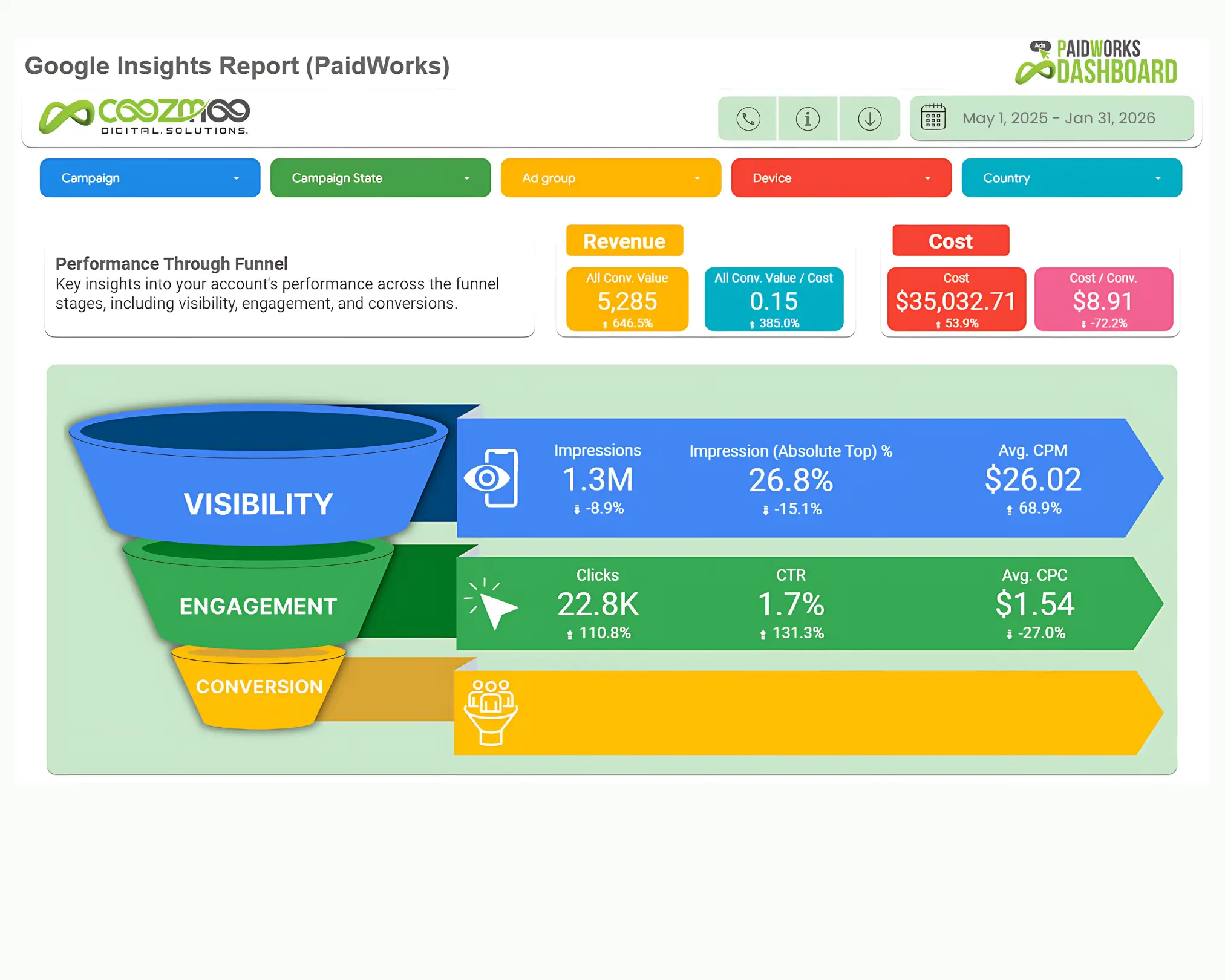 To overcome these challenges, Coozmoo Digital Solutions implemented a structured, data-driven marketing strategy focused on improving search visibility, strengthening paid acquisition, and optimizing conversions. The approach included technical SEO improvements, targeted keyword expansion, refined audience targeting, and ongoing performance tracking. The goal was not just to increase traffic, but to attract qualified homeowners searching for remodeling services.