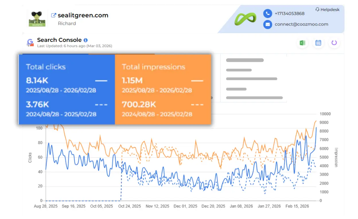 To tackle these challenges, Coozmoo Digital Solutions devised a comprehensive digital strategy designed to boost SEO performance, enhance content reach, improve conversion rates, and strengthen social media impact. By fine-tuning website structure, creating compelling content, and implementing targeted engagement tactics, we elevated Seal It Green’s visibility, user experience, and brand influence, ultimately driving massive growth in traffic and sales.