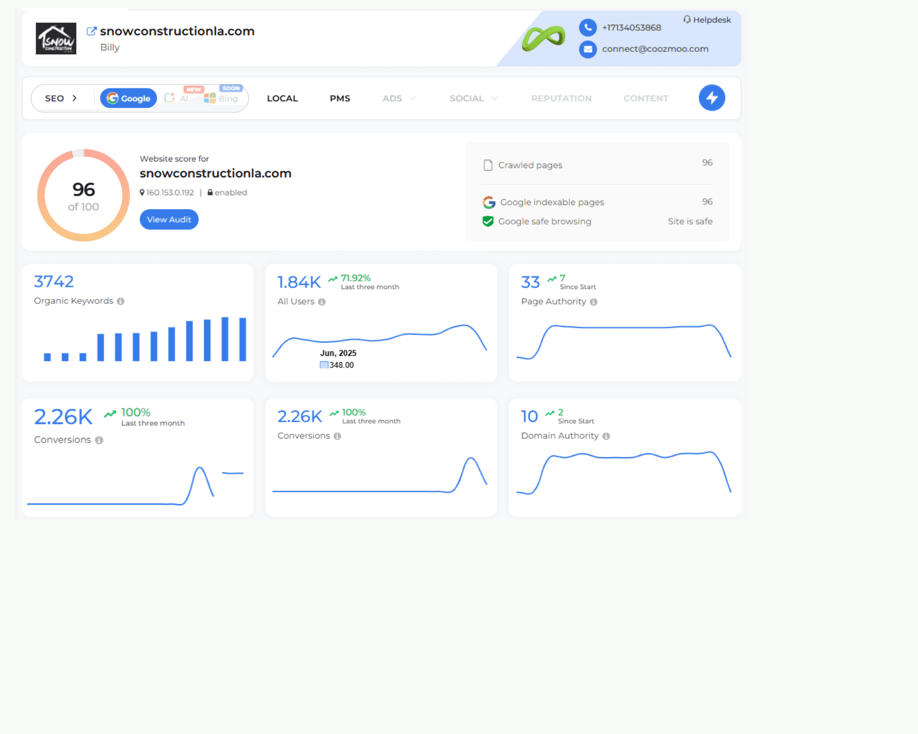 To overcome these challenges, Coozmoo Digital Solutions crafted a strategic digital transformation plan focused on Local SEO, content marketing, and website optimization. By improving overall search rankings, enhancing user experience, & establishing online credibility, our tailored approach captured high intent prospects & delivered a highly scalable, sustainable lead generation engine that eventually boosted Snow Construction's performance & overall brand growth.