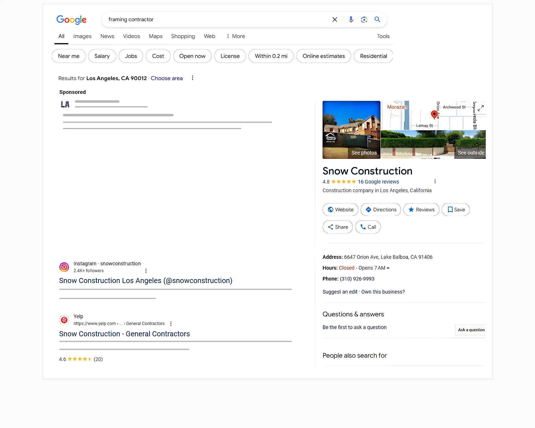 Snow Construction is a premier general contractor and home builder based in Los Angeles. With a strong reputation for excellence, they specialize in new construction, commercial projects, custom home building, ADUs, and residential remodeling. Despite their extensive industry expertise and high-quality craftsmanship, the company heavily relied on traditional word-of-mouth referrals.
