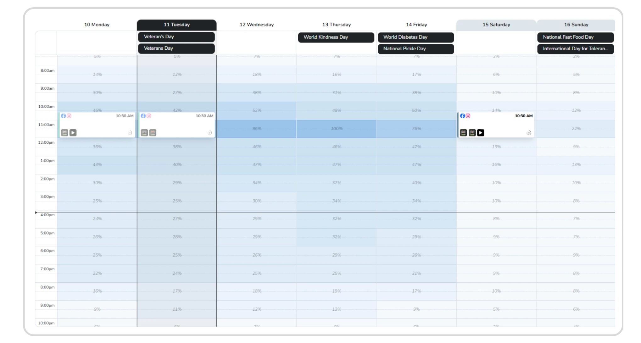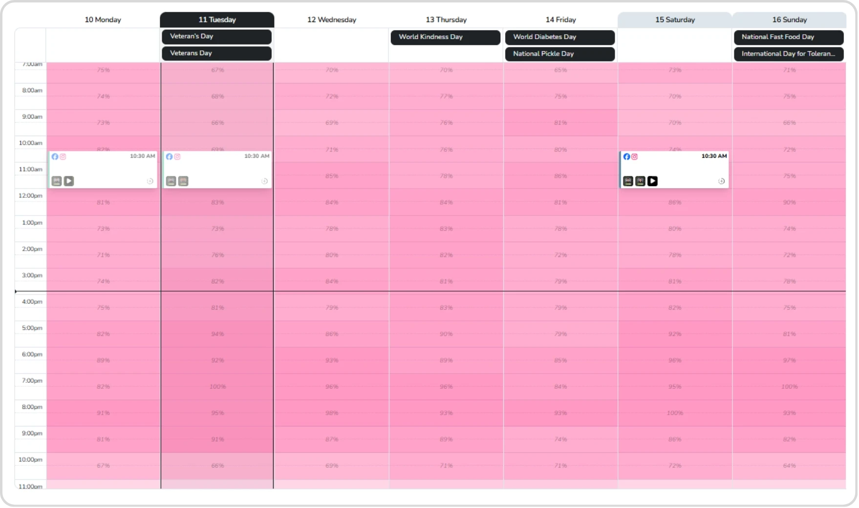 Posts made at this peak late morning windows receive a powerful initial boost leading to longer-term visibility.