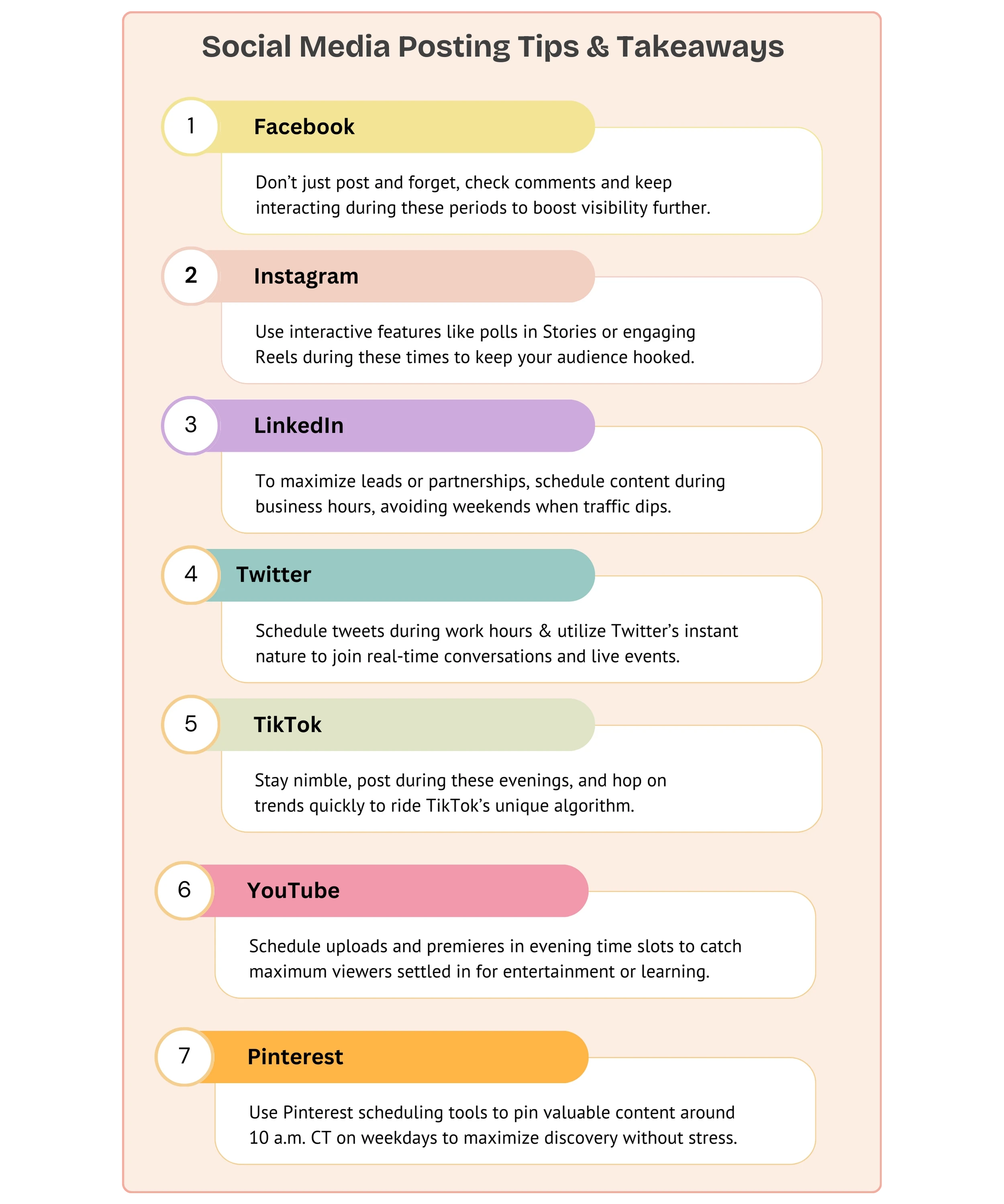 Test and Adapt: No two audiences are the same, so use these timing guidelines as a starting point. Test different posting times, track results, and adjust your strategy as you learn.